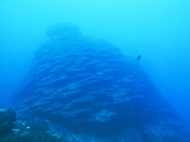 イサキやクロホシイシモチが取り囲んでいます。