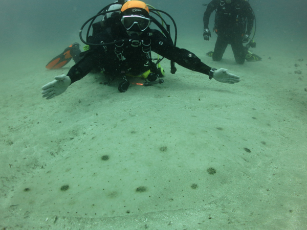 近づいても何をしてもヒラメは「ワシ、知ら~ん。」という感じでダイバーを