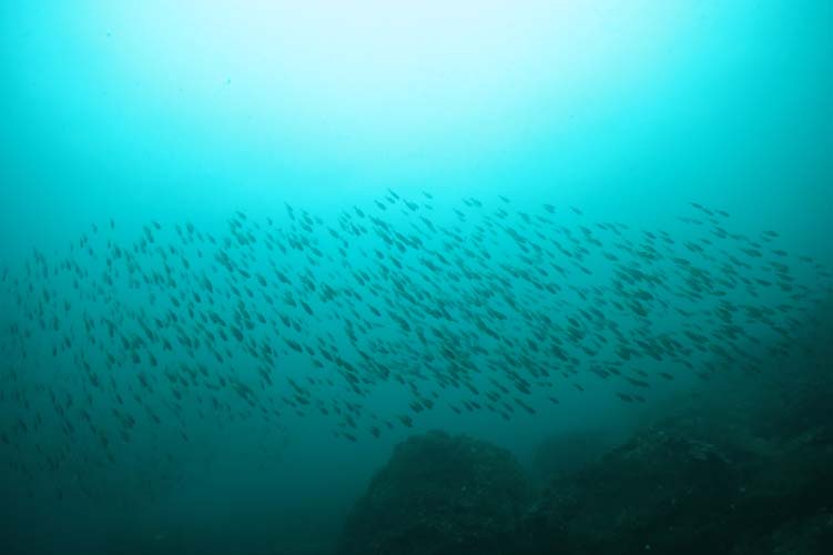 定番のイサキの大群に、今日はキビナゴとタカベとクロホシイシモチの群れ!