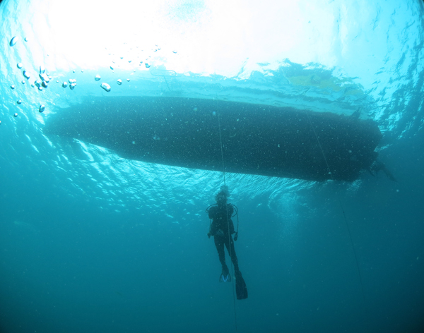 ボランティアダイバーを乗せた船4隻が
