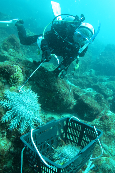 環境変化などで大発生したオニヒトデやレイシガイなど、人がなんとかしないといけない状態になっています