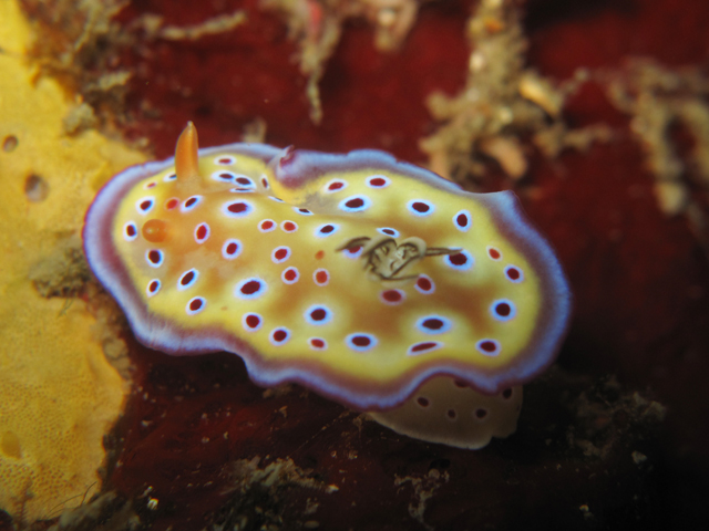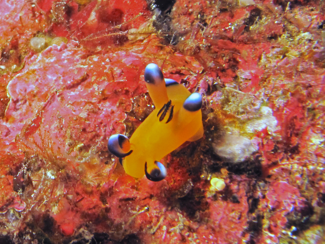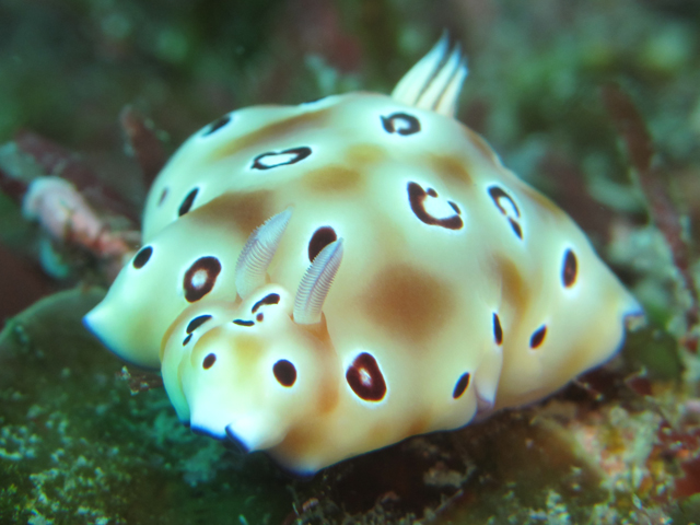 お馴染みウデフリツノザヤウミウシ。通称ピカチューで人気者のウミウシです