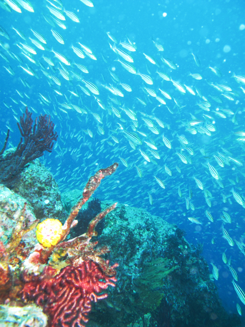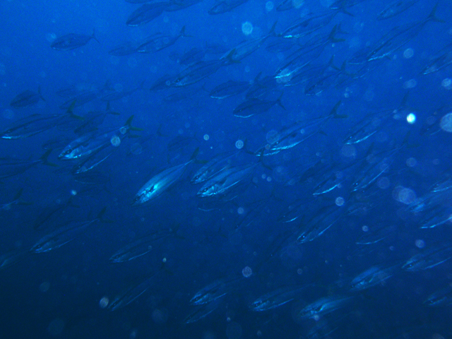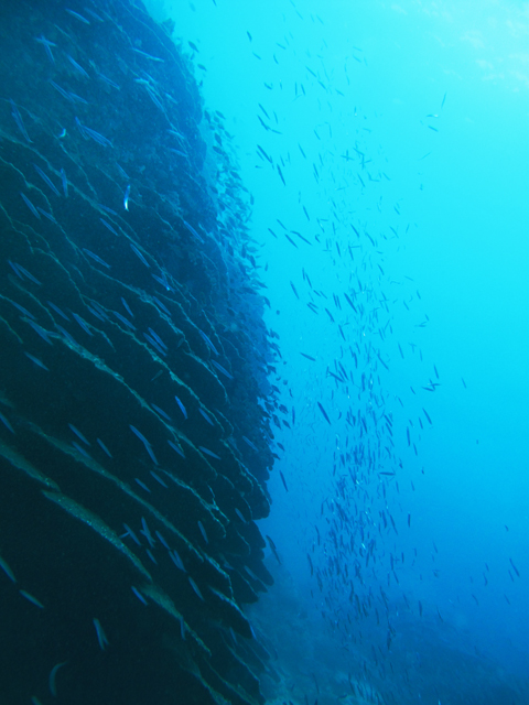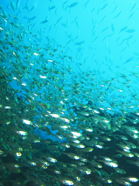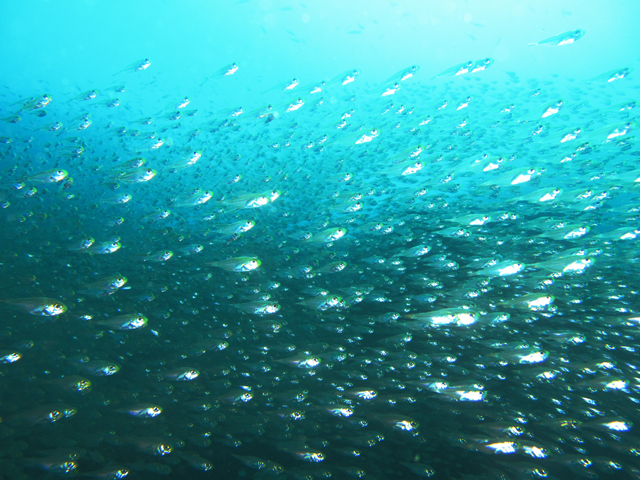 今日の内湾はキビナゴがたくさん!千年サンゴの周りを取り囲んでいました