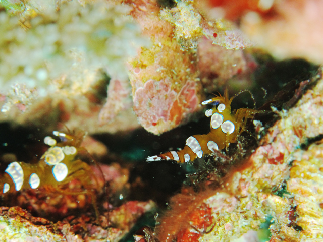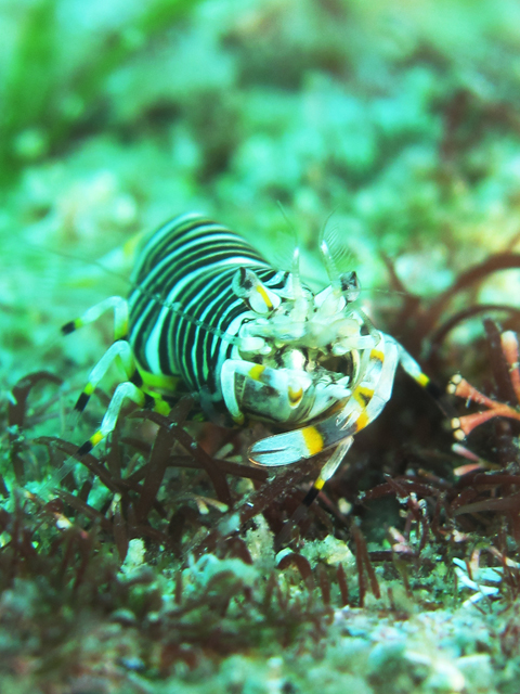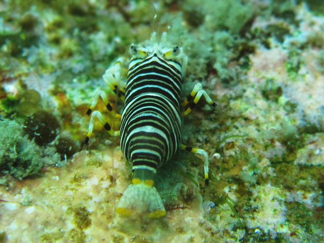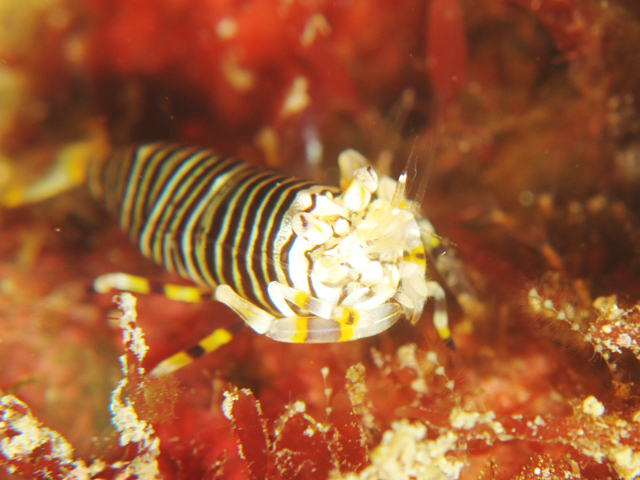 真上から見ると、綺麗な横縞模様、まさしくヨコシマエビです
