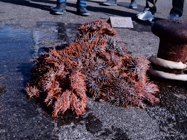 普段は石の下や、亀裂なに棲んでいますがエサはヒトデやウニの皮膚