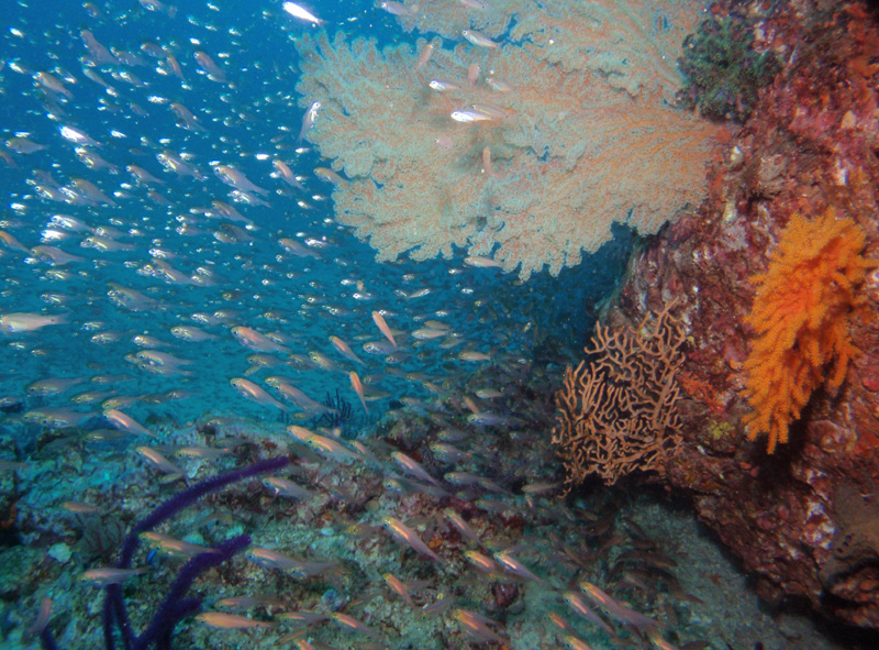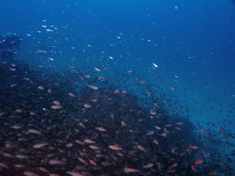 コロダイ成魚の群、キンギョハナダイ、ソラスズメダイ、