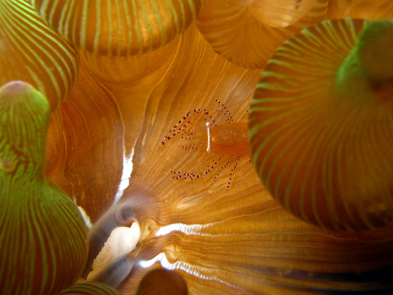 イソギンチャクの中には卵をもったイソギンチャクエビがいました!