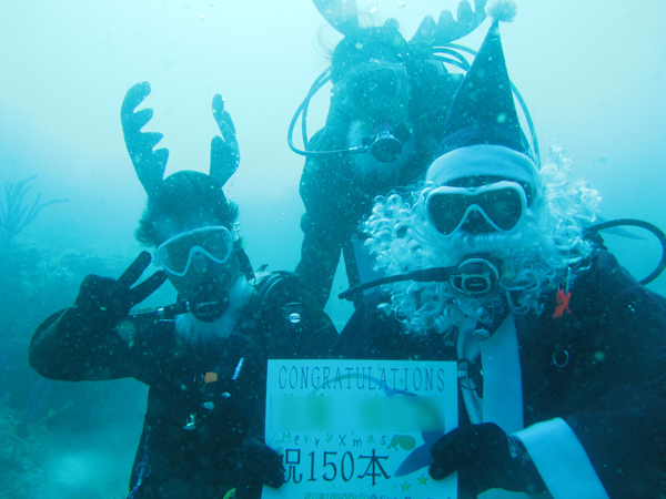 今日はゲストの方も、スタッフもX,masバージョンに変身して潜ってきましたよ☆