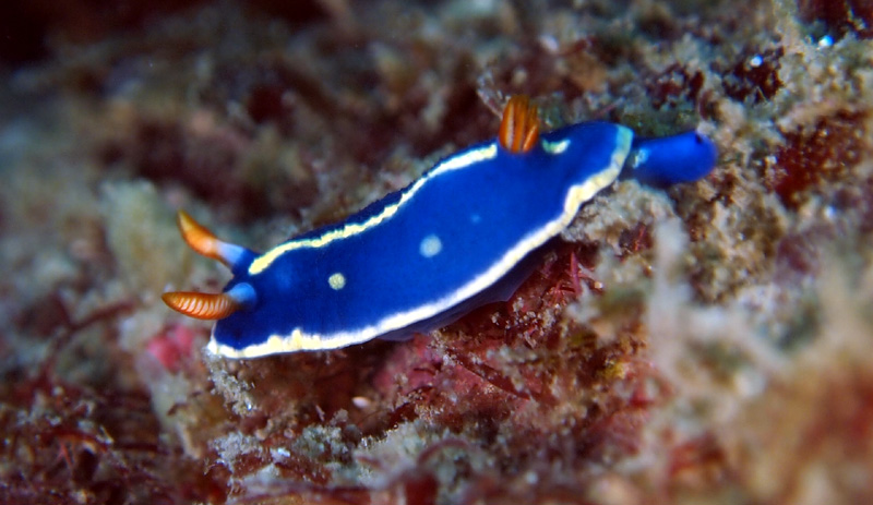 浅場に向かう途中ではウミウシがぱらぱらと☆