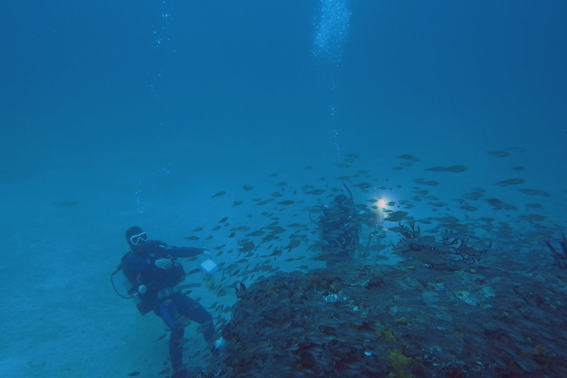 千年サンゴが水中では巨大なX,masツリーに早変わり!!