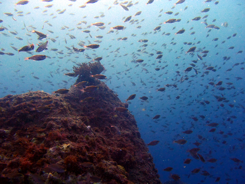 その下にはソラスズメダイ&キンギョハナダイ&クロホシイシモチの群れがゴッチャになってて『最後までココでまったりでも良いなぁ・・・』っと、思わず思っちゃう程☆