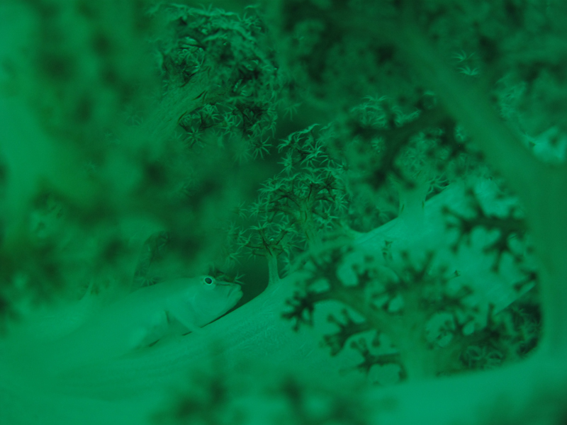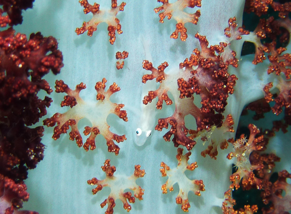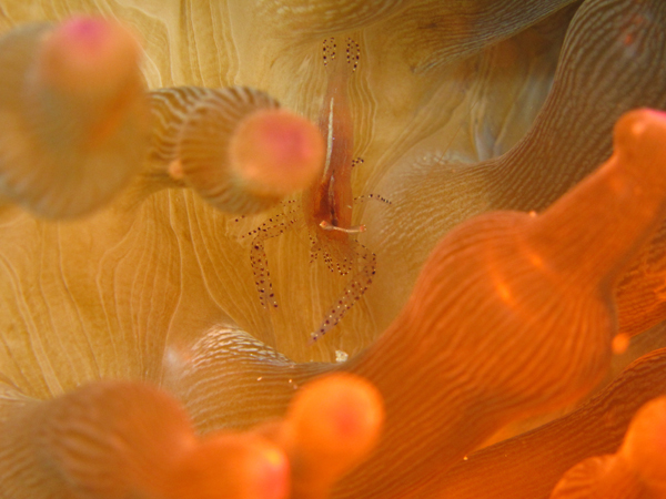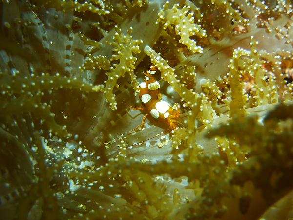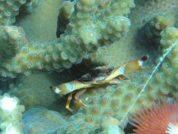 サンゴにはキモガニ、ヒメイソギンチャクエビもいました。