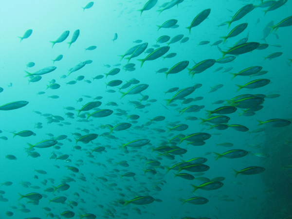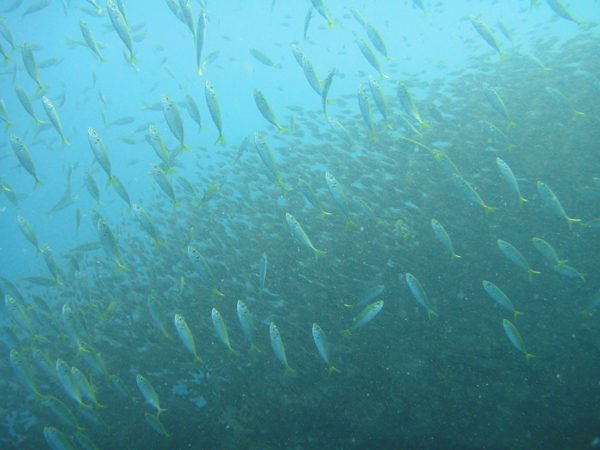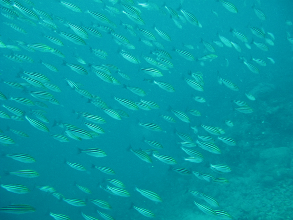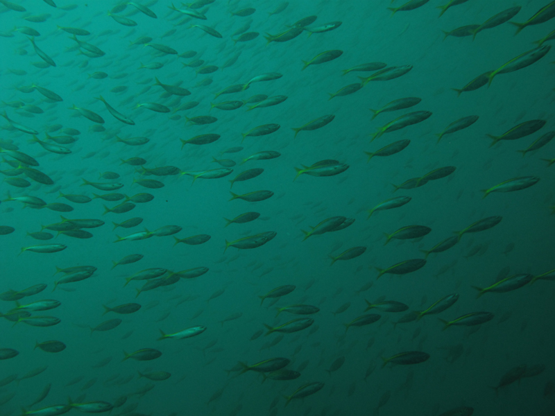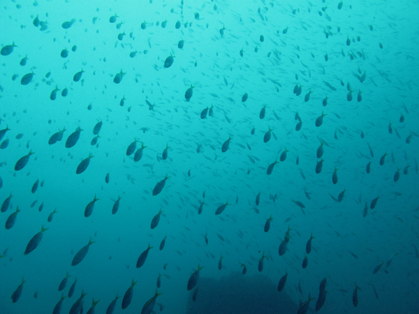 戻ってくると、今度はイサキの大群に囲まれ、その後はまたまたアジの大群の
