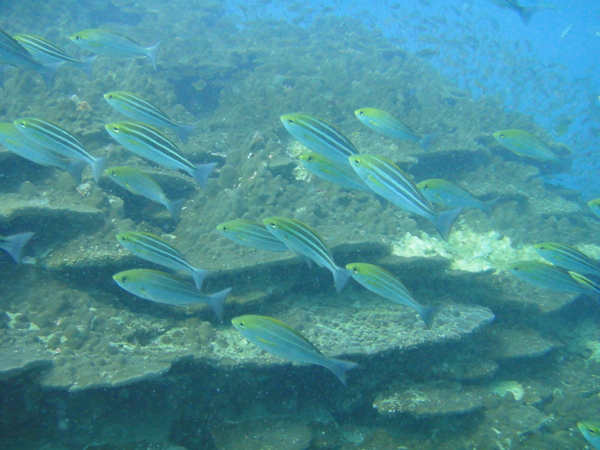 浅場ではスミツキトノサマダイ、ミスジチョウチョウウオ、