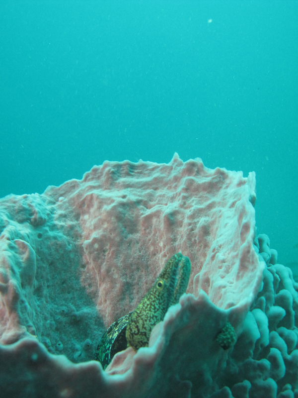 そしていつものようにスリバチカイメンの中で休憩しているウツボに会って
