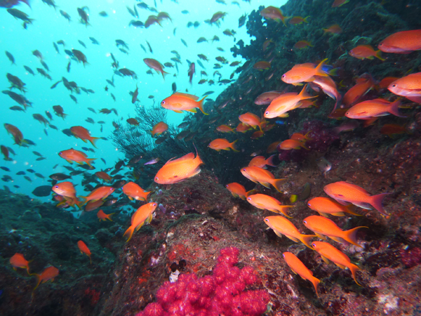 お決まりの浅瀬ではコロダイがたっくさん群れ、キンギョハナダイ、