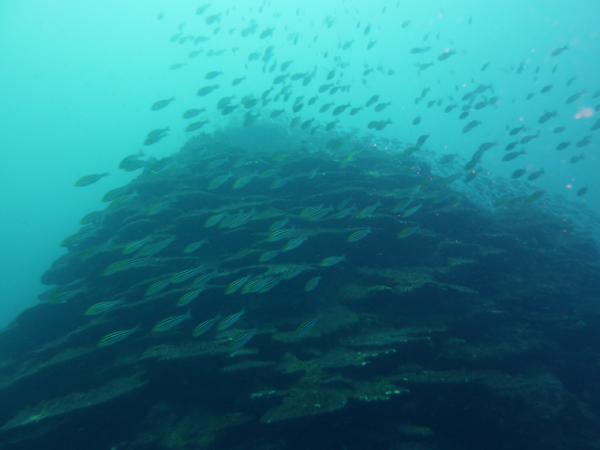 回遊魚待ちをしながら通称「森永アーチ」をくぐり、ニザダイの群と遭遇。