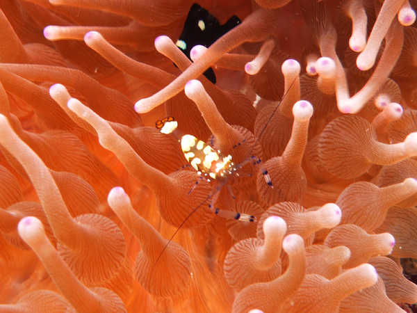 こちらではゴソゴソとイソギンチャクモエビ、アカホシカクレエビ、大きなイセエビを見て、