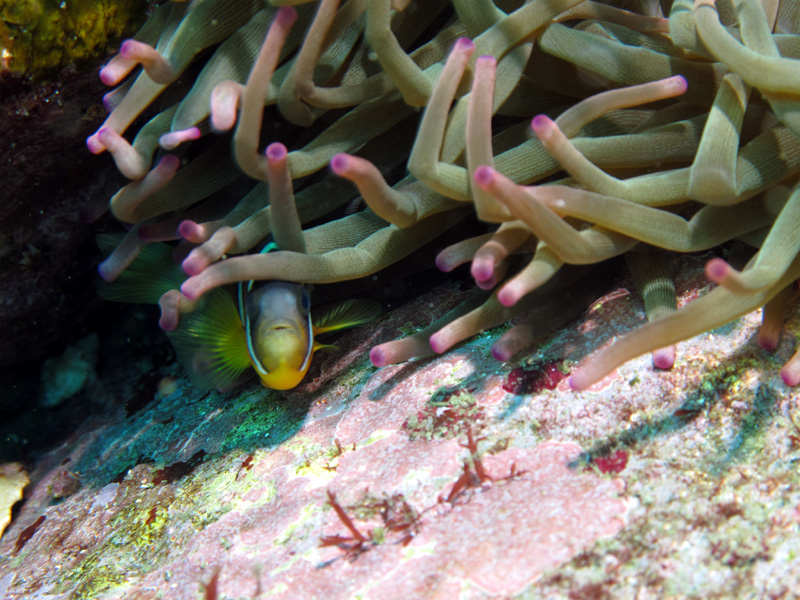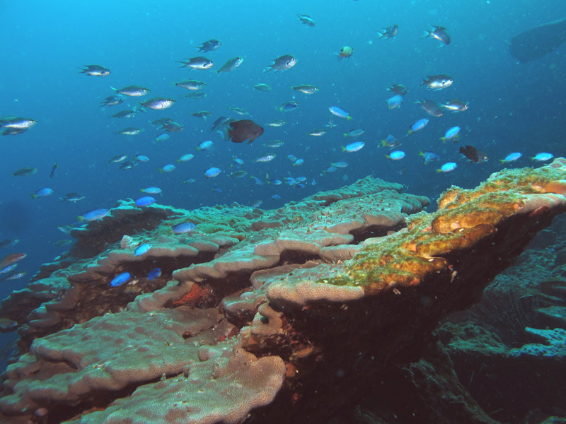 サンゴの隙間にはスミツキトノサマダイの赤ちゃんにキンチャクダイの赤ちゃんが居ました。