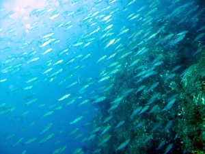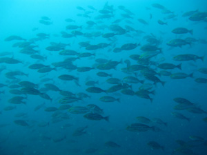 がっさんがっさんに群れまくっていて、周りにクロホシイシモチやキンギョハナダイ、キビナゴの群れも入り乱れてるので、すっごい迫力っすよ~アレは(>_<)♪♪