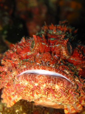 アンカー付近ではブラックオオモンカエルアンコウやハナオトメウミウシ・ニシキウミウシなどにも