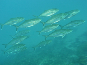 中層にはアジの群やキビナゴの群・アオリイカなんかも泳いでいました。