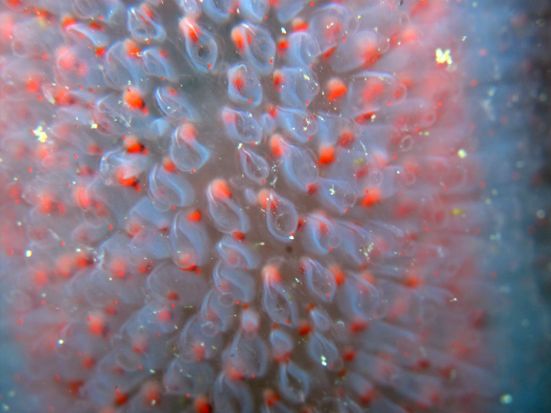 ミニチュアオウミウシが3匹に仲むつまじく寄り添っていたイガグリウミウシ4匹