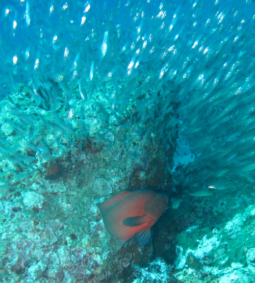 エキジットしようと船へ向かっていると、キビナゴの大群がやってきて
