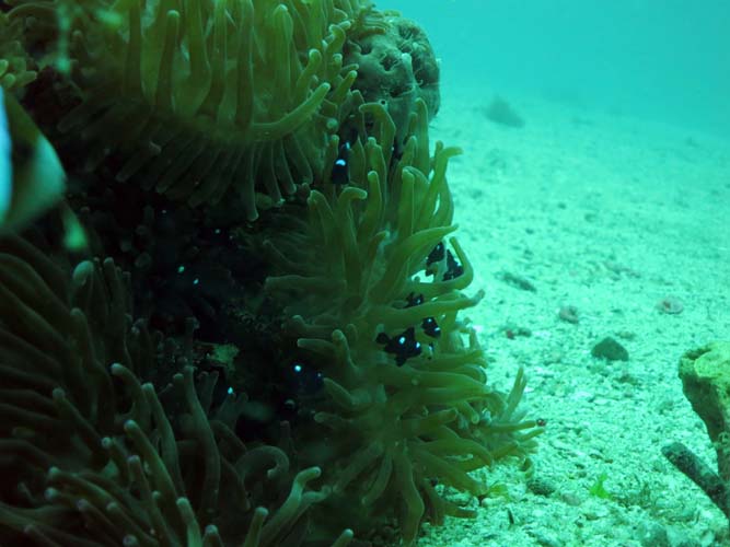 こちらは、僕が出したエアーに群がってくるクロホシイシモチ達