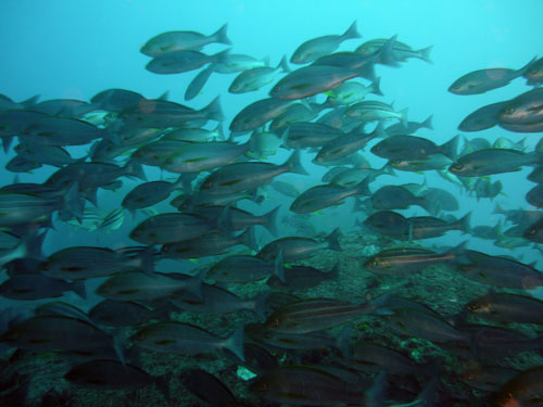 チエバノシタは大群系が多く、マアジ・カンパチ・ブリなどの大群が