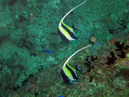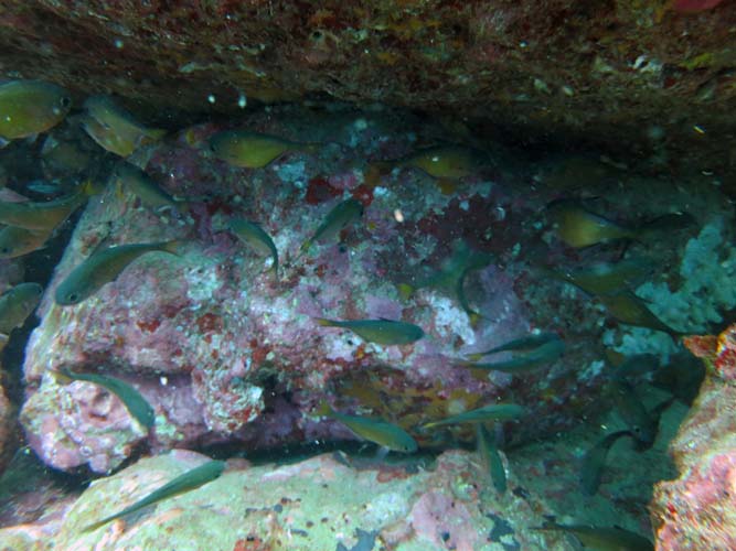 内湾では、熱帯系のお魚たちがたくさん群れていて