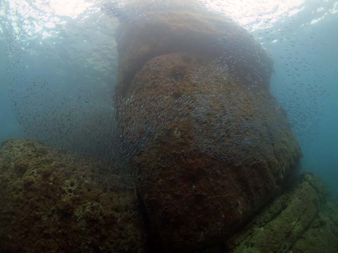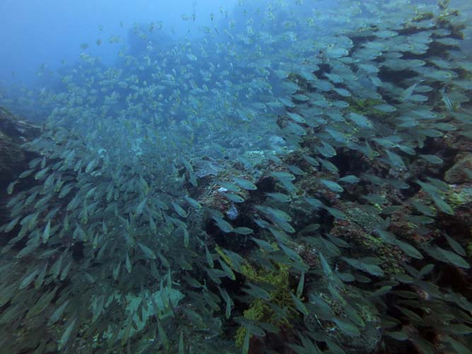 そんな私をイサキとタカベとクロホシイシモチの大群が