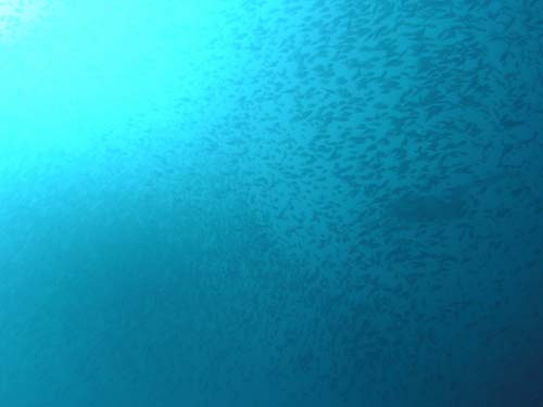 水面近くにはキビナゴの大群、アオリイカの群れ、カマス、ハタタテダイ、チョウチョウウオなど