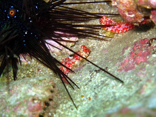 コホシカニダマシ、ハリセンボン、ゼブラガニ、ムチカラマツエビなどを発見しました。