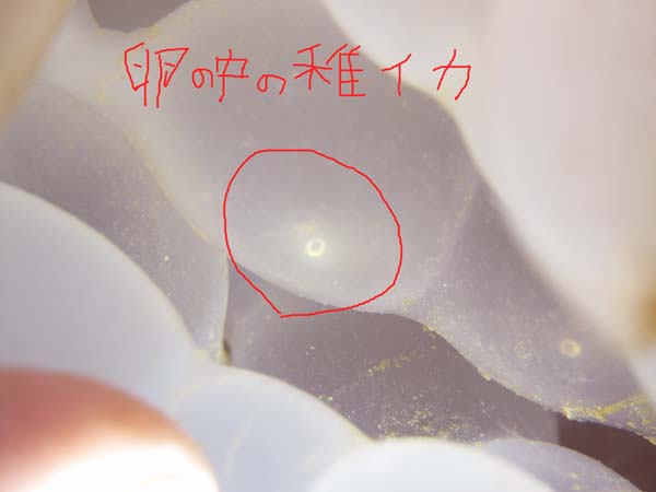 アオリイカの卵をチェ~ック!卵の中でチッチャ~いアオリイカが元気に動いていました!