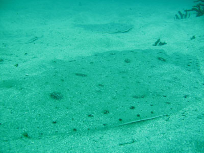 根から少し離れた砂地には、ヒラメが砂に隠れてなんだか