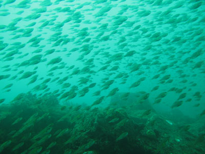 エントリー直後から、すっごい大群のキビナゴが層になって