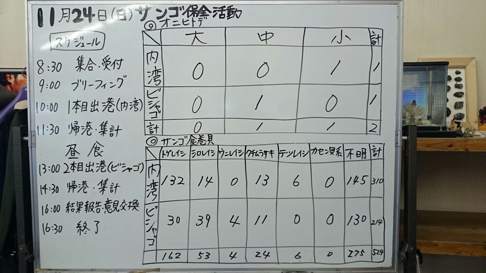 オニヒトデもサンゴ食貝もかなり数が減っております