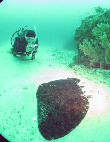 大物といえばやはりクエ!すぐに群れの中に隠れてしまいましたが迫力あり!続いてツバクロエイ、スジアラ巨大ヒラメ!