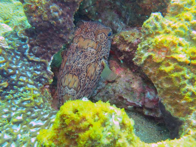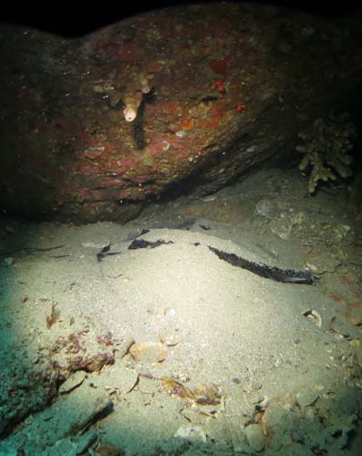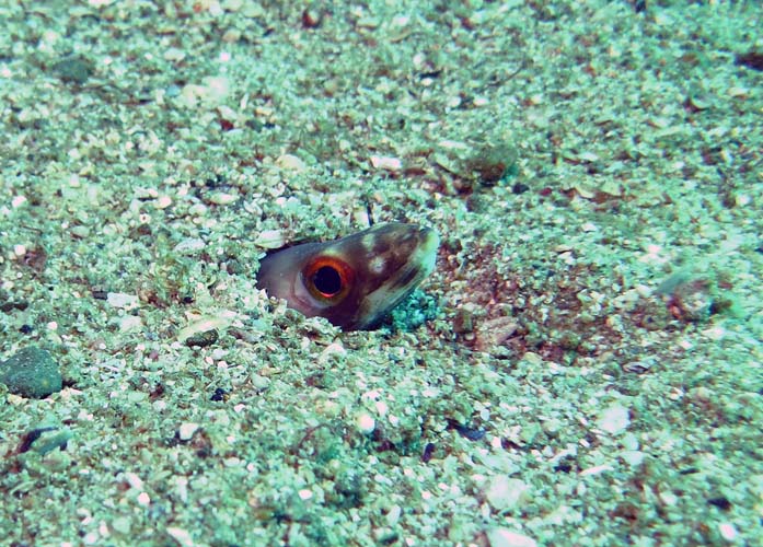 深場の岩の隙間には大きなマダラエイ!砂をかぶっているから分かりづらいかもしれませんがなかなかのサイズ!そして浅場ではホシゴンベやマツバギンポ、トウシマコケギンポなどの可愛い生物目白押しです!
