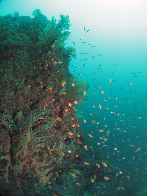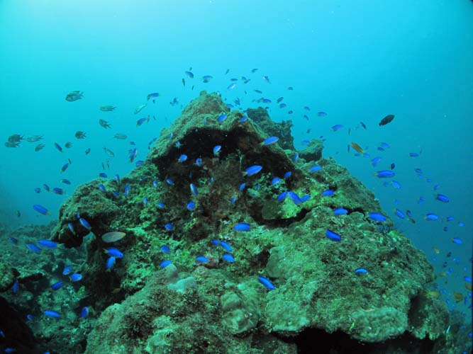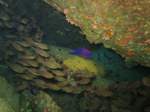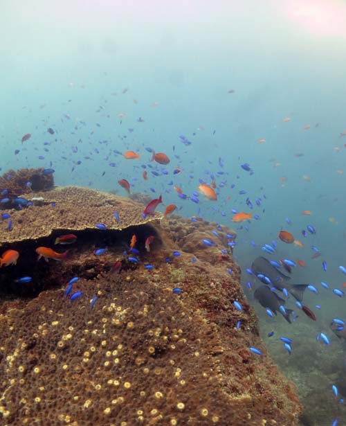 サンゴ礁奥地にはソラスズメ筆頭にカラフルなお魚たちが